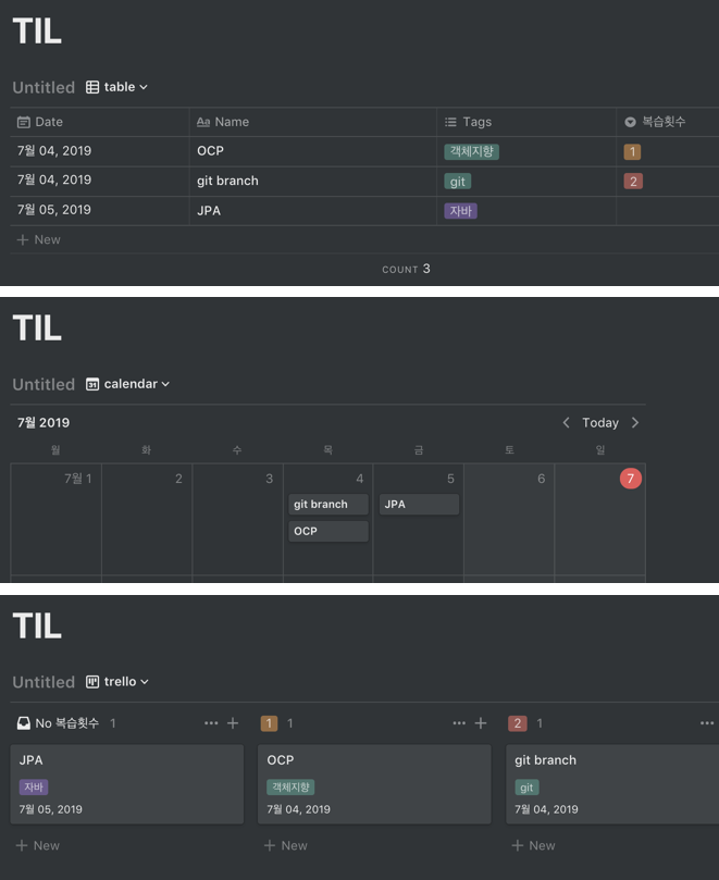 - 끝내고 1번, 자기 전에 1번, 다음날 일어나서 1번 , 3일 뒤에 1번