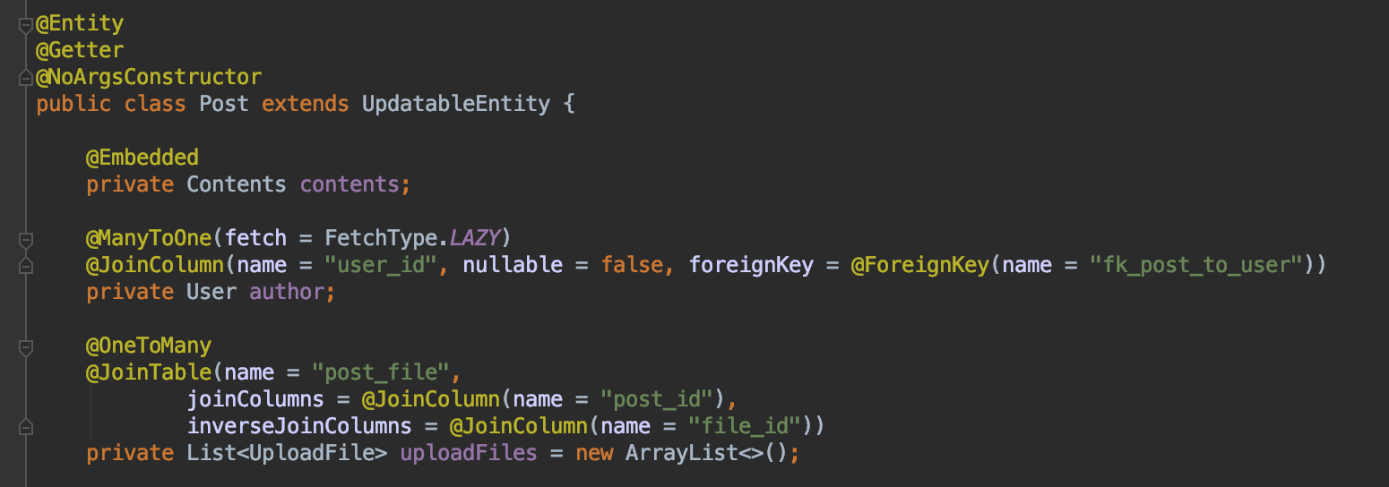 - Post Entity를 등록, 수정, 삭제하기 위해서는 User가 필수로 필요함