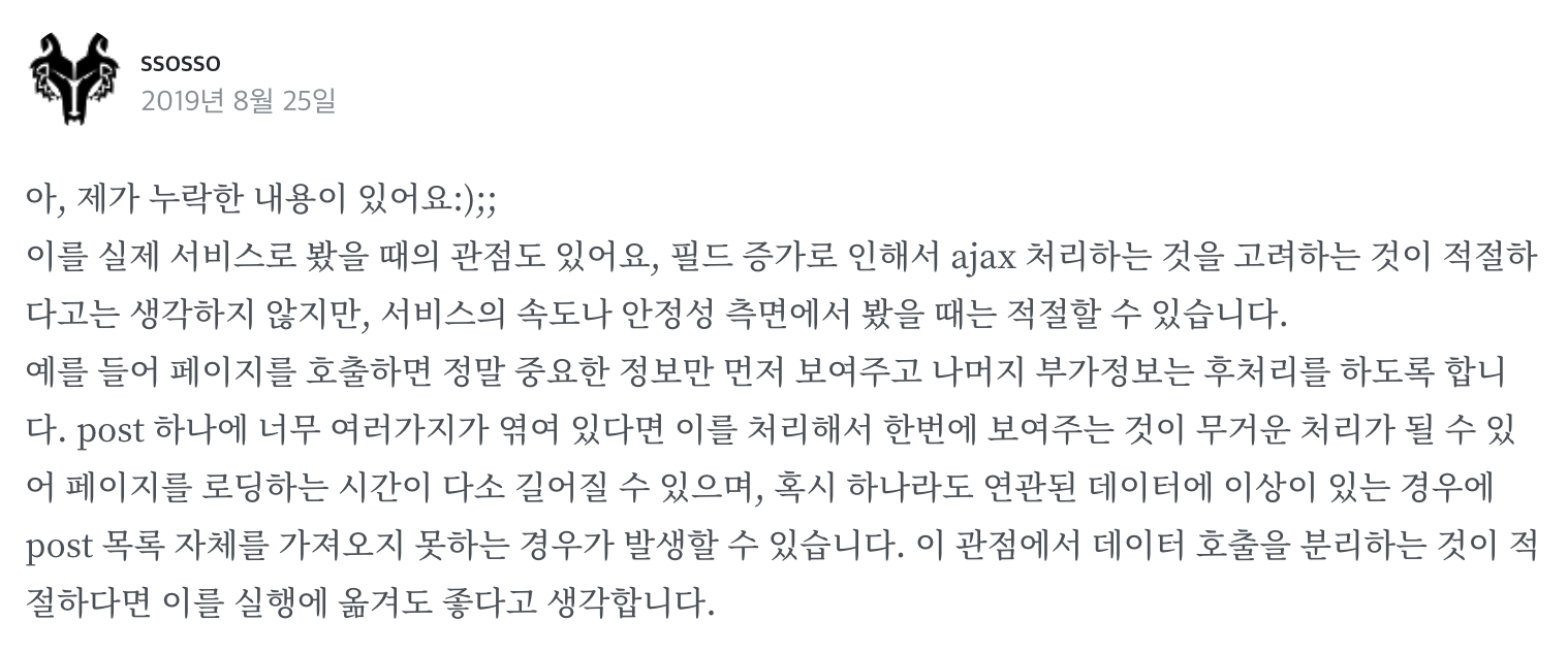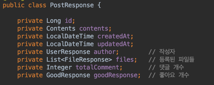 제가 찾은 문제는 PostResponse가 너무 많은 내용을 한 번에 보여주려고 한다는 것입니다.