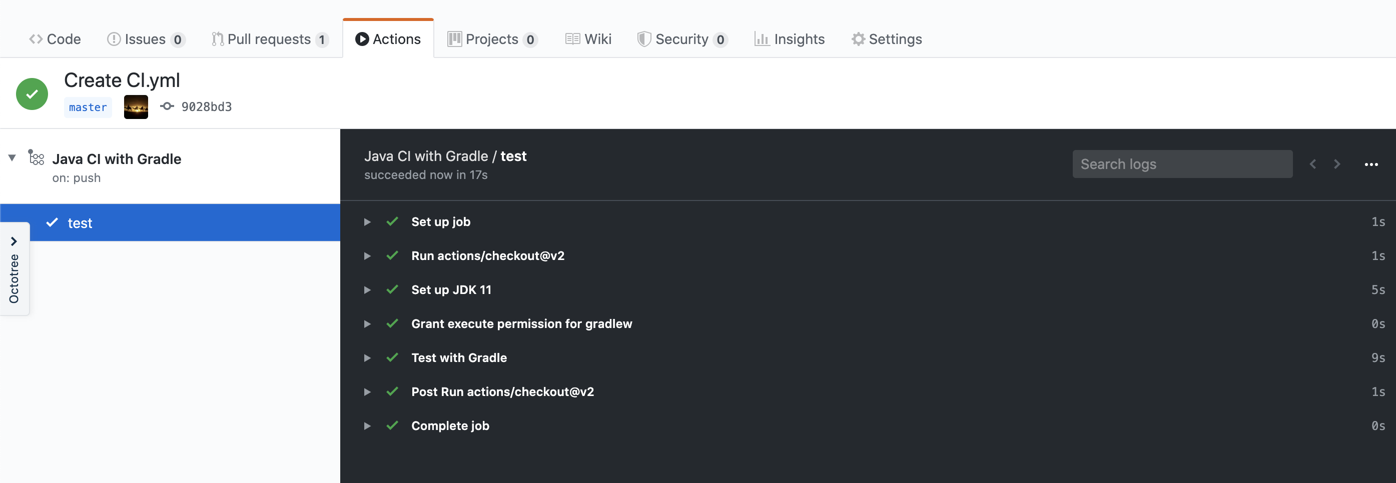 여기까지 Github Action을 이용하여 CI 구축을 간단하게 해봤습니다.
