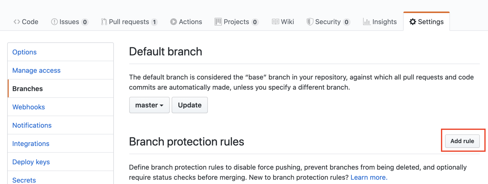Repository - Settings - Branches - Add rule