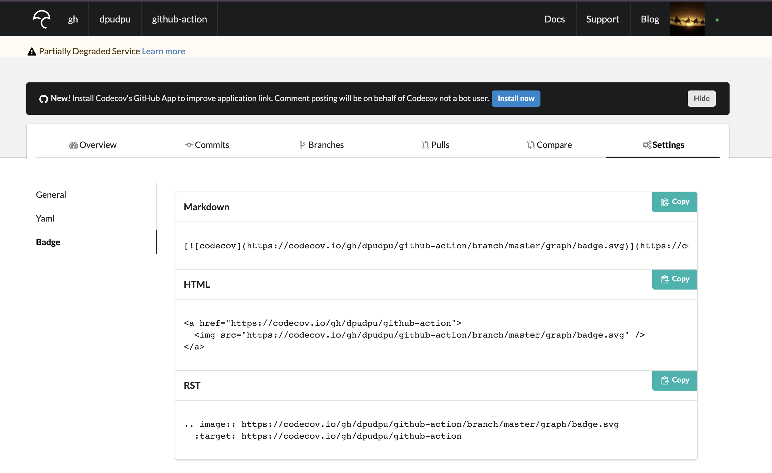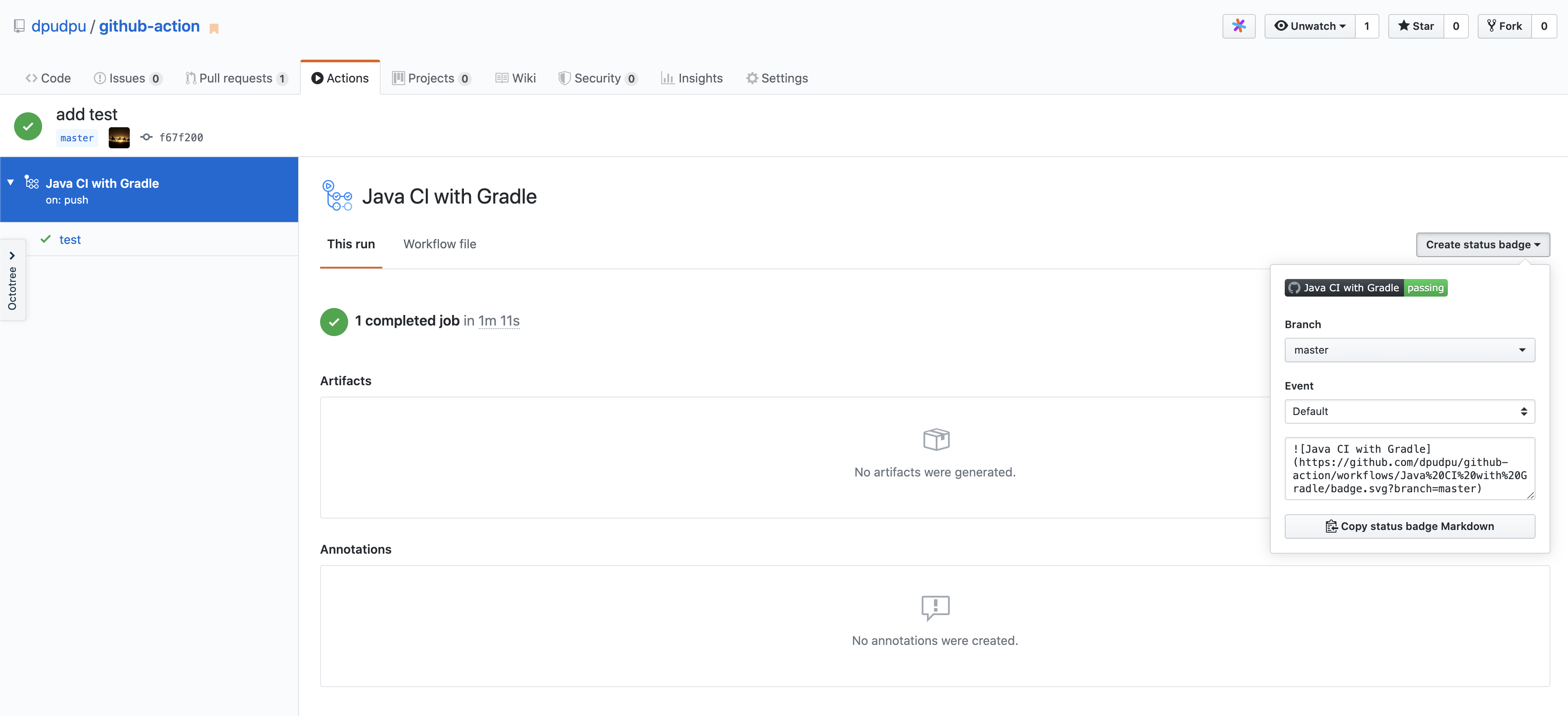 github action status badge