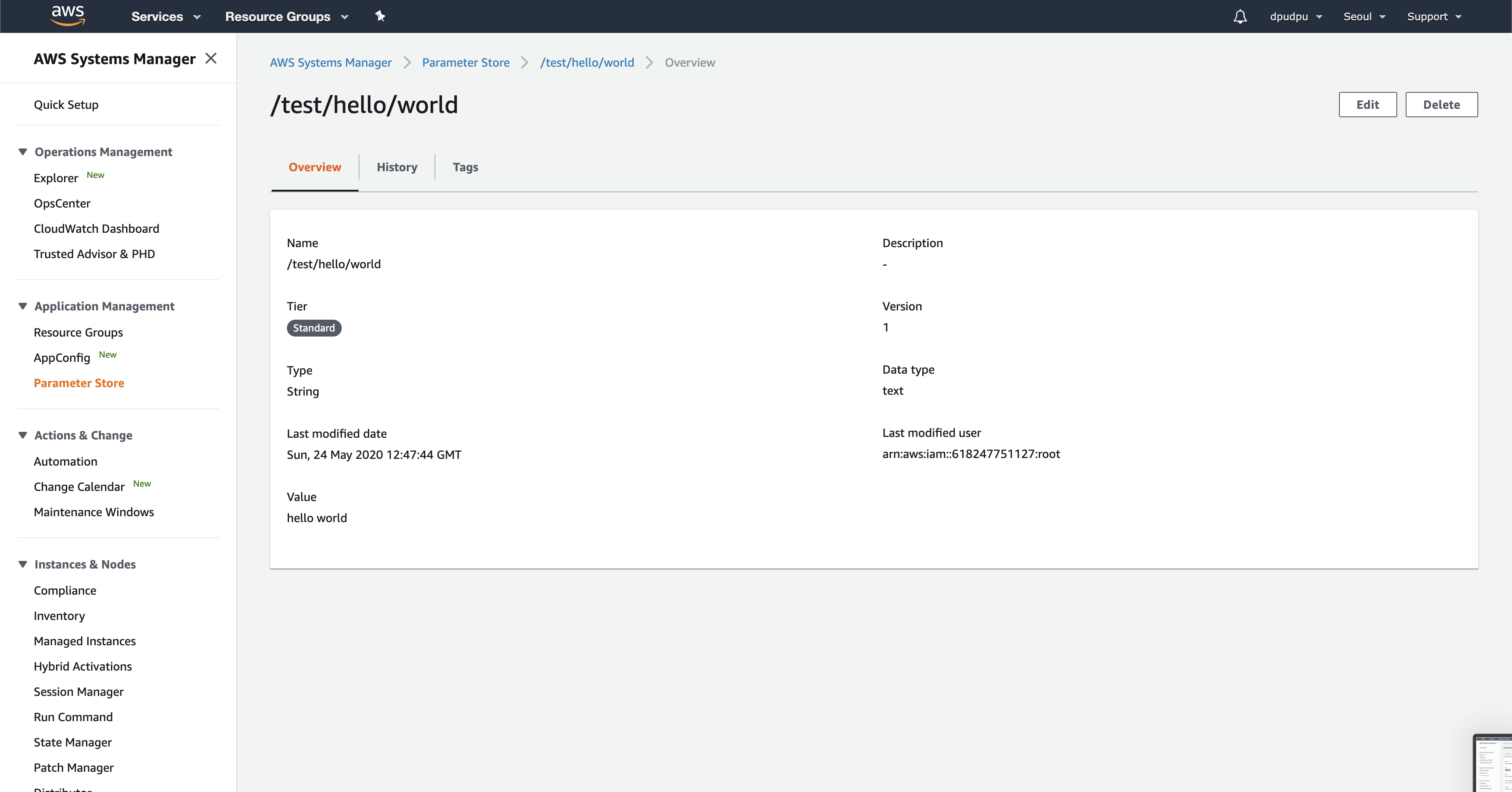 "ARN": "arn:aws:ssm:ap-northeast-2:618247751127:parameter/test/hello/world"
