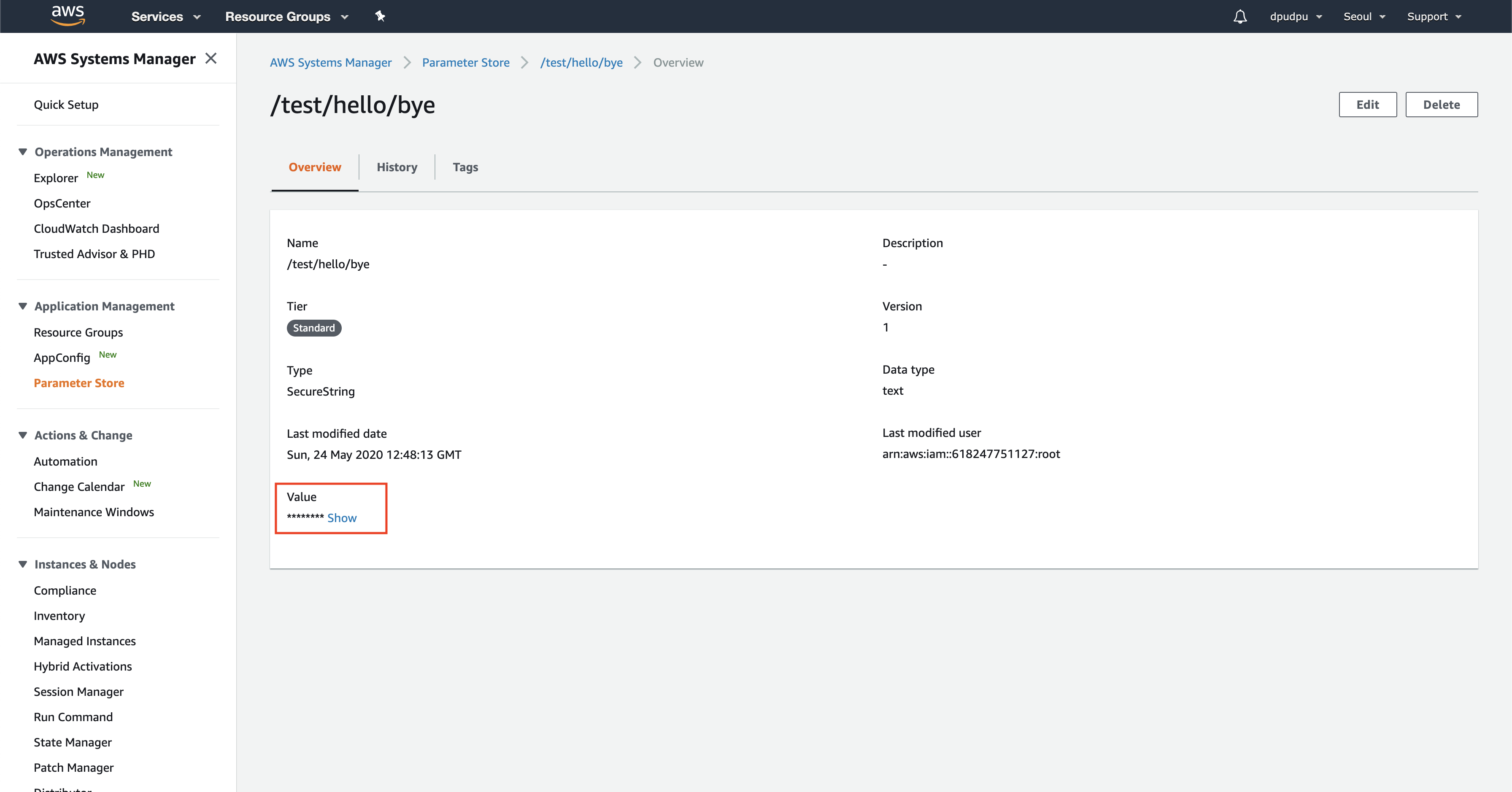 "ARN": "arn:aws:ssm:ap-northeast-2:618247751127:parameter/test/hello/bye"